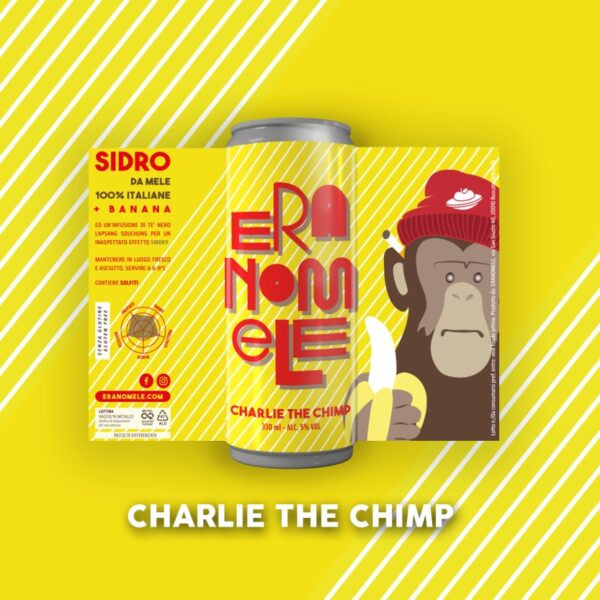 Charlie the Chimp è ispirato ad un personaggio più che mai singolare: Chimp Charlie, uno scimpanzè di uno zoo sudafricano noto per un suo strano vizio, fumava sigarette. Da qui l’inusuale accostamento di due sapori: lo smokey, o  affumicato (ottenuto grazie all’infusione di un tè tradizionale cinese, il Lapsang Souchong) e l’inconfondibile sapore delle banane fresche pressate e lasciate macerare per alcuni giorni. Questi aromi, attraverso le note appena dolci e i profumi di mela regalati dal sidro di base, si fondono e si esprimono in tempi differenti, regalando un’esperienza di sensi ricca e soddisfacente, dal naso al retrogusto finale.